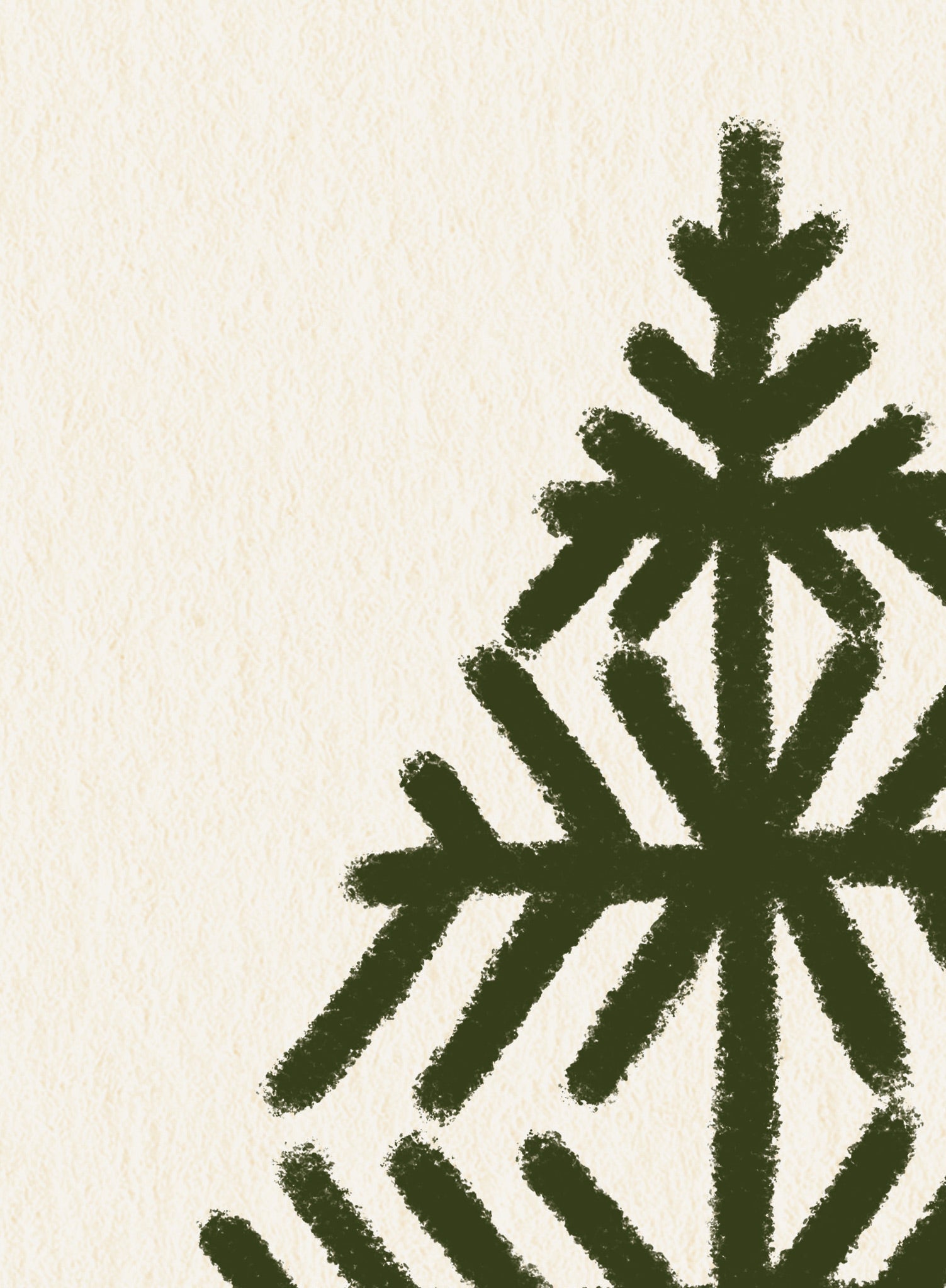 This print features a minimalist depiction of a stylized evergreen tree, rendered in deep forest green against a soft, cream background. The tree's geometric branches form a symmetrical pattern, enclosed by a simple border that adds a touch of refinement to the composition.